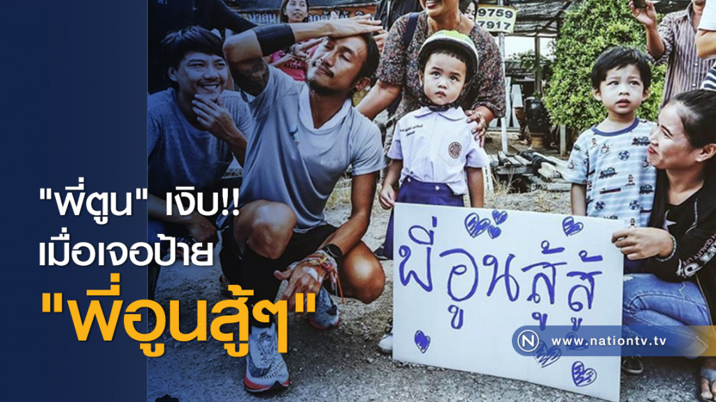 เมื่อมีเด็กน้อย 2 คนมารอให้กำลังใจพี่ตูน พร้อมถือป้าย "พี่อูนสู้สู้" ถึงกับทำให้พี่ตูนเอามือก่ายหน้าผากเลยทีเดียว ซึ่งทีมงานก้าวคนละก้าวก็ได้ถ่ายภาพและนำมาเผยแพร่ให้ได้ชมกัน