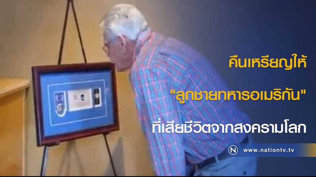 เหรียญที่เคยเป็นของพ่อของเขา มีชื่อพ่อสลักอยู่ด้านหลังและถูกนำมาวางในกรอบรูปอย่างสวงงาม พร้อมภาพและข้อความเกี่ยวกับช่วงที่พ่อของเขาปฏฺิบัติงาน
