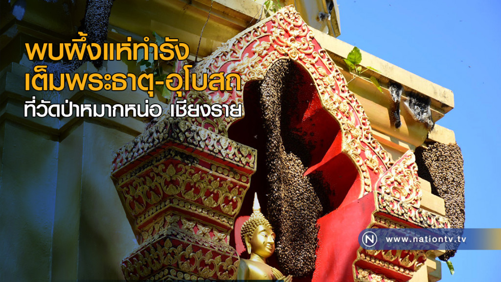 พระมหาชัยนันต์ โชติปัญโญ เจ้าอาวาสวัดป่าหมากหน่อ กล่าวว่า ปัจจุบันที่อุโบสถและพระธาตุโยนกนคร แสงคำ ซึ่งเป็นพระธาตุภายในวัดกลายเป็นที่อยู่ประจำของฝูงผึ้งจำนวนมากที่ไปจับจองจุดต่างๆ ทำรังจนเต็มพื้นที่ไปหมด โดยฝูงผึ้งต่างไปทำรังกันมานานหลาย 10 ปีมาแล้วโดยไม่ทราบเหตุผลแต่ก็เชื่อว่าเกิดจากสภาพที่เหมาะสมเพราะพื้นที่ราบล้อมด้วยต้นไม้และหนองน้ำ