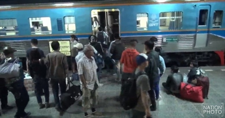 โดยขบวนรถไฟ ที่ออกจากสถานีต้นทางที่จังหวัดหนองคาย - สถานีหัวลำโพง กรุงเทพฯ มีอยู่ 2 ขบวน คือ ขบวนรถเร็ว ซึ่งออกจากสถานีหนองคาย เวลา 18.30 น. ทางการรถไฟได้เพิ่มตู้โดยสารอีก 3 ตู้ เพื่อบริการประชาชนได้ทั่วถึง และไม่มีผู้โดยสารตกค้าง ส่วนอีกขบวนเป็นขบวนรถด่วน ออกจากสถานีหนองคาย เวลา 19.15 น. ซึ่งมีประชาชนและผู้โดยสารเต็มทุกตู้ ไม่ต่างจากขบวนรถเร็วเช่นกัน