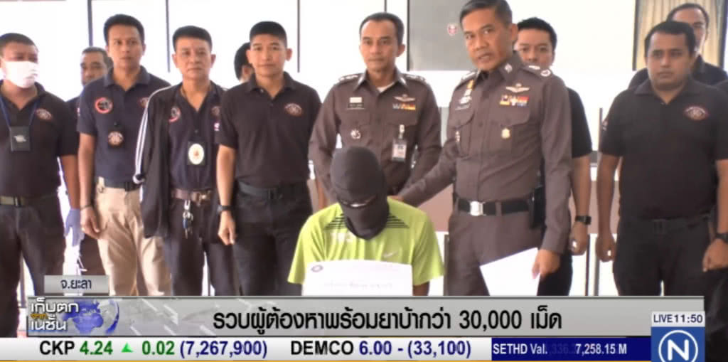 เมื่อช่วงเช้าที่ผ่านมา ที่กองบังคับการตำรวจภูธรจังหวัดยะลา พล.ต.ต.กฤษฎา แก้วจันดี ผู้บังคับการตำรวจภูธรจังหวัดยะลา พ.ต.อ.นรินทร์ บูสะมัญ รองผู้บังคับการตำรวจภูธรจังหวัดยะลา พ.ต.อ.สุทธิเวท บุญยรัตกลิน ผู้กำกับการสืบสวนสอบสวน ได้ร่วมกันแถลงข่าวผลการจับกุมจับกุมนายอาแว ดือราแม อายุ 32 ปี ชาว อ.เมือง จ.ยะลา พร้อมของกลางยาเสพติดให้โทษประเภท 1 (ยาบ้า) จำนวน 30,000 เม็ด