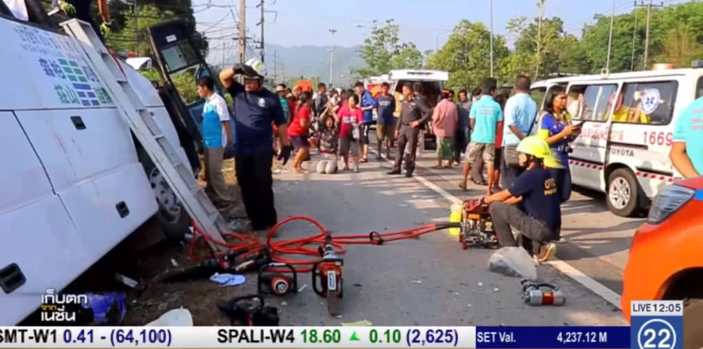 รถทัวร์บริษัทอันซิ่น ทัวร์ นำนักท่องเที่ยวชาวจีนมา 35 คน มาจาก โรงแรมอโยธยาจ.กระบี่ เพื่อส่งนักท่องเที่ยวชาวจีนลงเรือไปเที่ยวหมู่เกาะสิมิลัน เมื่อถึง สามแยกสภ.ตะกั่วทุ่ง ที่เกิดเหตุ คาดว่า คนขับหลับใน ทำให้รถเสียหลักลงข้างทางชนกับเสาไฟฟ้าขนาดใหญ่ คนขับเสียชีวิตในที่เกิดเหตุทันที สภาพ รถพังยับเยิน เจ้าหน้าที่กู้ภัย ต้องใช้เครื่องตัดถ่างเพื่อช่วยเหลือนักท่องเที่ยวชาวจีน กว่า 20 คน ในจำนวนนี้ผู้บาดเจ็บสาหัส 6 คน