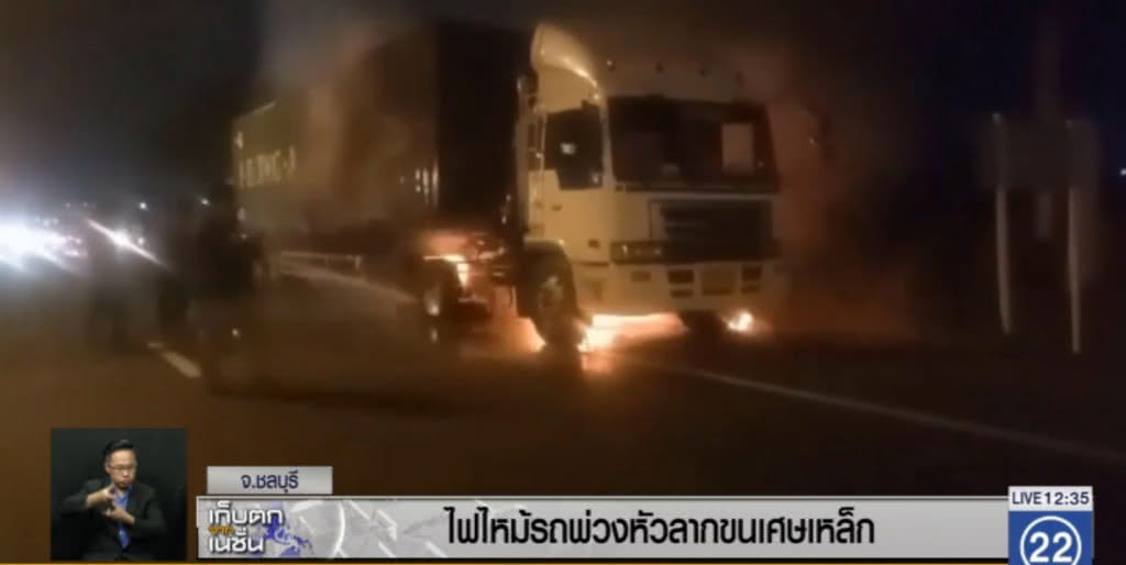 สอบถามนายธนาธัช ขันเดช อายุ 34 ปีคนขับเล่าว่า ได้ไปขนเศษเหล็กจากนิคมพัฒนา เพื่อนำไปส่งยังท่าเรือแหลมฉบัง ระหว่างขับมาถึงที่เกิดเหตุ ได้ยินเสียงคล้ายกับเสียงยางระเบิด ก่อนมีไฟลุกลามมาอย่างรวดเร็ว ขณะนั้นตกใจทำอะไรไม่ถูก ที่ชาวบ้านในระแวกใกล้เคียง นำถังดับเพลิงมาช่วยกันฉีดเพื่อสกัดเพลิง และรอรถดับเพลิงเข้ามาช่วยจนสามารถคุมเพลิงไว้ได้ โชคดีที่เหตุการณ์นี้ไม่มีใครได้รับบาดเจ็บหรือเสียชีวิต ส่วนสาเหตุไม่ทราบแน่ชัด ต้องรอให้เจ้าหน้าที่ทำการตรวจสอบหาสาเหตุที่แท้จริงต่อไป