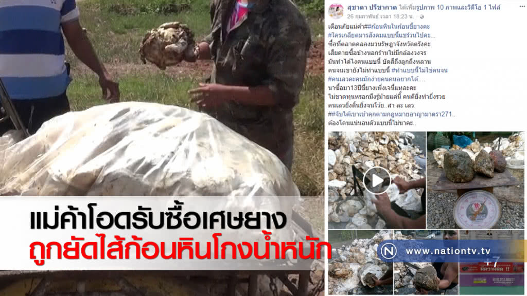 วันที่ 28 กุมภาพันธ์ 2561 ตามที่ได้มีแม่ค้ารับซื้อเศษยางรายหนึ่งในพื้นที่ ต.หนองปรือ อ.รัษฎา จ.ตรัง ซึ่งใช้ชื่อเฟซบุ๊กว่า ชาดา ปรีชากาด ได้โพสต์ข้อความผ่านทางเฟซบุ๊กโอดครวญ หลังรับซื้อเศษยางจากชาวบ้านรายหนึ่งขณะไปตั้งจุดรับซื้ออยู่ที่ตลาดคลองมวน ต.หนองปรือ แล้วพบว่าน้ำหนักของก้อนยางหนักมากผิดปกติ จึงผ่าดูกลับพบว่ามีการนำก้อนหินขนาดใหญ่ยัดไว้ข้างใน โดยไม่ทราบว่าเป็นของใคร เพราะไม่มีวงจรปิด โดยก้อนยางที่รับซื้อปะปนมากับเศษก้อนยางอื่นๆ จึงโพสต์ข้อความเตือนภัยพ่อค้าแม่ค้ารับซื้อเศษยางคนอื่นๆ เพื่อจะได้ระมัดระวังในการรับซื้อ