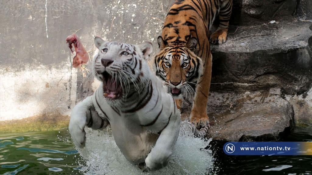 เสือขาวและเสือโคร่ง ภายในสวนสัตว์สงขลา อ.เมือง จ.สงขลา กำลังตะปบชิ้นไก่กินกลางน้ำภายในคอกที่เจ้าหน้าที่นำมาผูกไว้กับไม้หย่อนลงไปให้สร้างความตื่นเต้นให้แก่นักท่องเที่ยวที่เข้ามาชมเป็นอย่างมาก ปัจจุบันสวนสัตว์แห่งนี้ได้มีผู้เดินทางมาเที่ยวกันมากขึ้นเพื่อชมสัตว์นานาชนิด โดยเฉพาะในโซนเสือจะได้รับความสนใจเป็นพิเศษ ผลพวงส่วนหนึ่งเนื่องมาจากข่าวการฆ่าเสือดำทุ่งใหญ่นเรศวรแห่งผืนป่าตะวันตก ที่ยังคงอยู่ในกระแสสังคมอย่างต่อเนื่องเป็นเวลากว่าหนึ่งเดือนแล้ว จนถึงวันนี้ยังไม่สามารถสรุปคดีสั่งฟ้องผู้ต้องหาได้