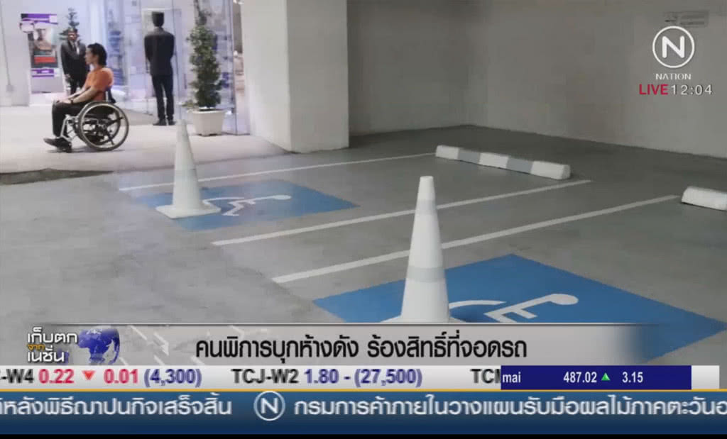 มานิตย์ อินทร์พิมพ์ หรือซาบะ ตัวแทนภาคีเครือข่ายสิ่งอำนวยความสะดวกแห่งประเทศไทย พร้อมฝ่ายกฎหมาย เพื่อนคนพิการ และสื่อมวลชนจำนวนหนึ่ง เดินทางไปที่ลานจอดรถห้างสรรพสินค้าเอ็มควอเทียร์และเอ็มโพเรียม เพื่อสำรวจจุดจอดรถสำหรับคนพิการ ทันทีที่ไปถึงบริเวณชั้น G ห้างเอ็มควอเทียร์ เจ้าหน้าที่รักษาความปลอดภัยเข้าประชิดตัวช่างภาพที่ถือกล้องวีดีโอขนาดใหญ่ หลังจากนั้นมีเจ้าหน้าที่ห้างลงมาเจรจากับนายมานิตย์ และขอความร่วมมือห้ามถ่ายภาพ ยกเว้นกล้องของทีมคนพิการเท่านั้น และจากการสำรวจพบว่า อาคารสามารถรองรับรถยนต์ได้ 2,500 คัน แต่เจ้าหน้าที่ไม่ยอมตอบคำถามว่ามีจุดจอดสำหรับคนพิการกี่ช่อง และจุดจอดก็ไม่ตรงคุณลักษณะตามกฎหมาย