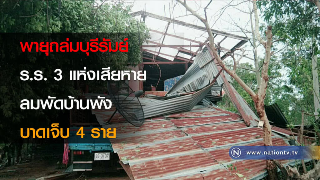 พายุฝนและลูกเห็บถล่ม อ.สตึก จ.บุรีรัมย์ พัดต้นไม้ใหญ่หักโค่นทับ ร.ร. 3 แห่งที่กำลังสอบปลายภาคเสียหายหนักโชคดีครู นร.ปลอดภัย ขณะลุงวัย 52 พาภรรยา-ลูกหลาน 15 ชีวิตวิ่งหนีลูกเห็บเข้าไปหลบในบ้านเคราะห์ซ้ำลมหมุนพัดบ้านพังคลืนทั้งหลังทับเจ็บ 4 ราย อบต.ผู้นำชุมชนเร่งสำรวจความเสียหายพบมีบ้านเรือน ยุ้งข้าวพังกว่า 100 หลัง