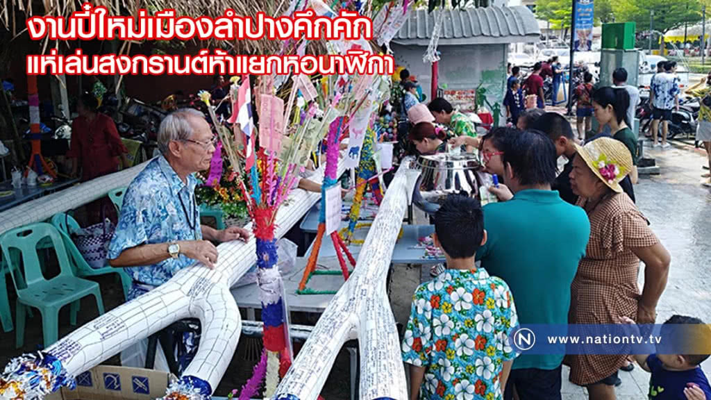 ลำปาง - งานปีใหม่เมือง ลำปางคึกคัก ประชาชน-นักท่องเที่ยวแห่เล่นสงกรานต์ห้าแยกหอนาฬิกา