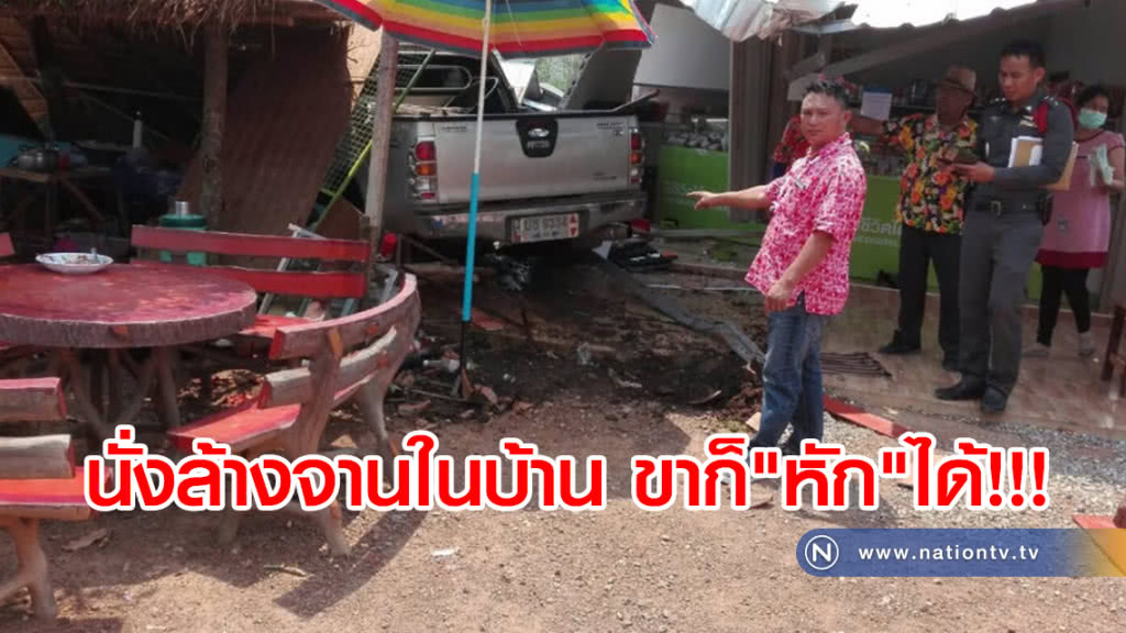ที่เกิดเหตุพบรถกระบะนั่งส่วนบุคคล ยี่ห้ออีซูซุดีแม็ค สีบร์อน หมายเลขทะเบียน บธ9334เลย มีนายแสงดาว วรรณชัย อายุ 46 ปี เลขที่ 11 หมู่ 3 บ้านหนองฮี ต.นาดินดำ อ.เมือง จ.เลย เป็นคนขับ เสียหลักพุ่งชนร้านค้าข้างถนนภายในหมู่บ้าน เลขที่ 28 ม.6 ต.นาดินดำ อ.เมือง จ.เลย เสียหาย มีผู้ได้รับบาดเจ็บ 1 ราย เพศหญิง ขาหัก ทราบชื่อว่านางสำเนียง รังสษี อายุ 50 ปี เป็นเจ้าของบ้านหลังดังกล่าว ขณะเกิดเหตุกำลังนั่งล้างจานที่ร้านค้า ถูกนำส่งโรงพยาบาลเลย