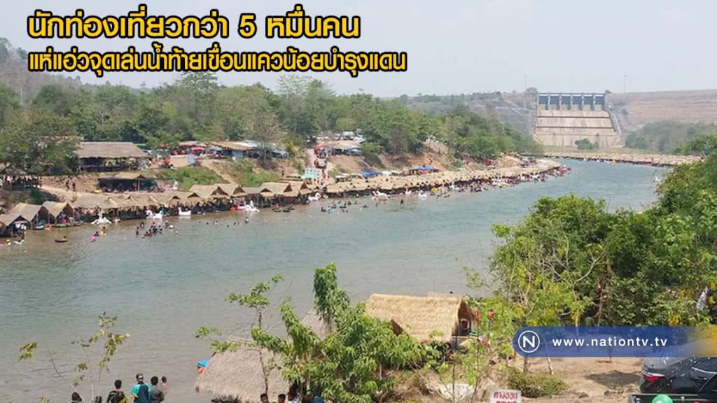 นักท่องเที่ยวกว่า 5 หมื่นคน แห่แอ่วจุดเล่นน้ำท้ายเขื่อนแควน้อยบำรุงแดน จนซุ้มเล่นน้ำ 1,500 ซุ้มเต็มหมด คาดเงินสะพัด 5 ล้านบาท