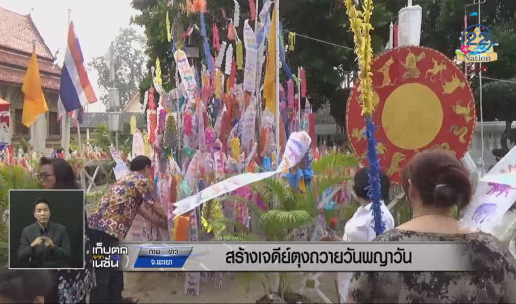 บรรยากาศในวันพญาวันของชาวภาคเหนือใน จ.พะเยา ประชาชนต่างแต่งกายด้วยชุดไทยล้านนาชักชวนลูกหลาน ญาติพี่น้องเข้าวัด ก่อกองเจดีย์ทราย ที่จะใช้ปักตุงหรือธง เพื่อให้กลายเป็นเจดีย์ตุงอันเป็นประเพณีแต่ครั้งโบราณของชาวไทยล้านนา