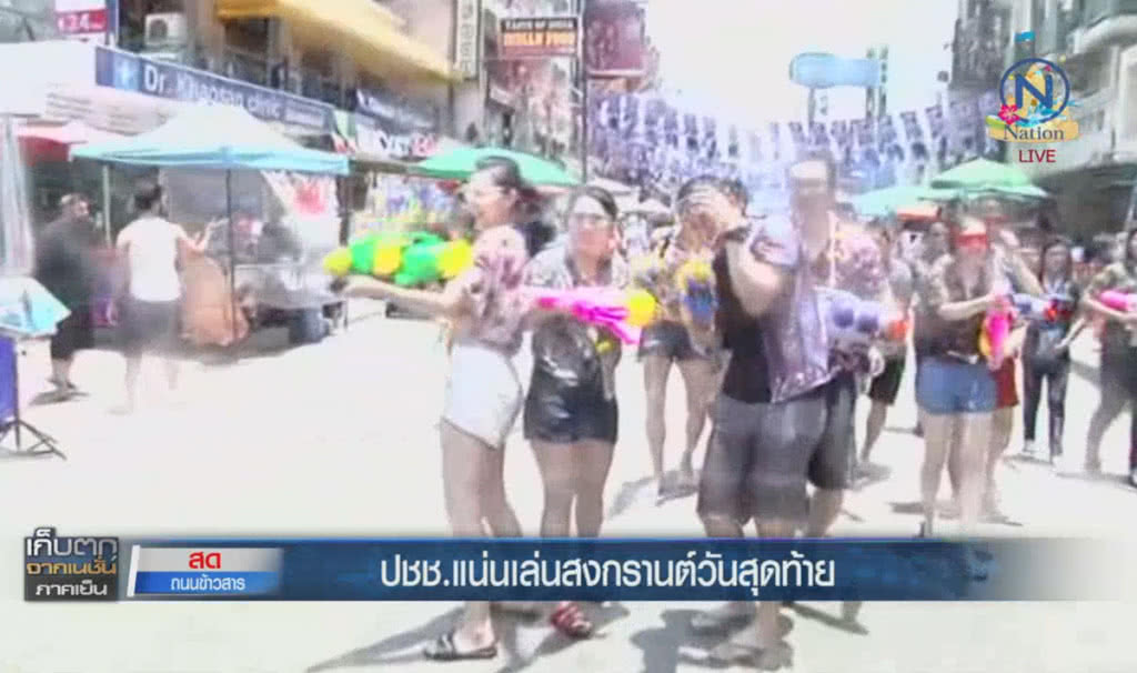 บรรยากาศการเล่นน้ำสงกรานต์วันสุดท้ายที่ถนนข้าวสารสุดคึกคัก นักท่องเที่ยวทั้งชาวไทยและต่างชาติหลั่งไหลเล่นน้ำสงกรานต์ส่งท้าย เจ้าหน้าที่คุมเข้มงดเครื่องดื่มแอลกอฮอล์ งดแต่งกายโป๊เปลือย และห้ามเล่นแป้ง ติดตามบรรยากาศสดๆกับคุณฐานิตา บุญหล้า