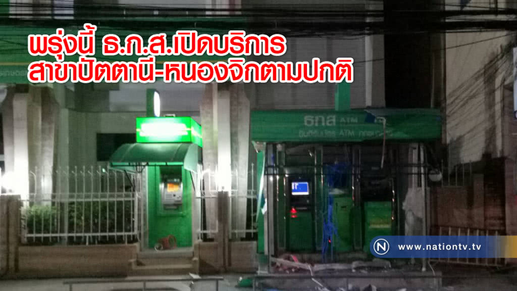 ความคืบหน้าล่าสุด ผู้สื่อข่าวสอบถามนายสุนัน พงศ์ประยูร ผู้อำนวยการสำนักงาน 12 สำนักงาน ธ.ก.ส.จังหวัดปัตตานี ระบุว่า เหตุระเบิดจังหวัดปัตตานี ส่งผลให้ตู้เอทีเอ็มของธนาคารที่ตั้งอยู่บริเวณหน้าที่ทำการสาขาปัตตานีได้รับความเสียหายรวม 2 ตู้ และตู้ปรับสมุดบัญชีอัตโนมัติเสียหาย 1 ตู้ ซึ่งในวันพรุ่งนี้จะเร่งซ่อมแซมให้ใช้งานได้โดยเร็ว ส่วนความเสียหายของธนาคารสาขาหนองจิก อยู่ระหว่างการตรวจสอบ โดยเบื้องต้นคาดว่าในวันพรุ่งนี้ทั้งสาขาปัตตานีและสาขาหนองจิกจะสามารถเปิดให้บริการประชาชนได้ตามปกติ