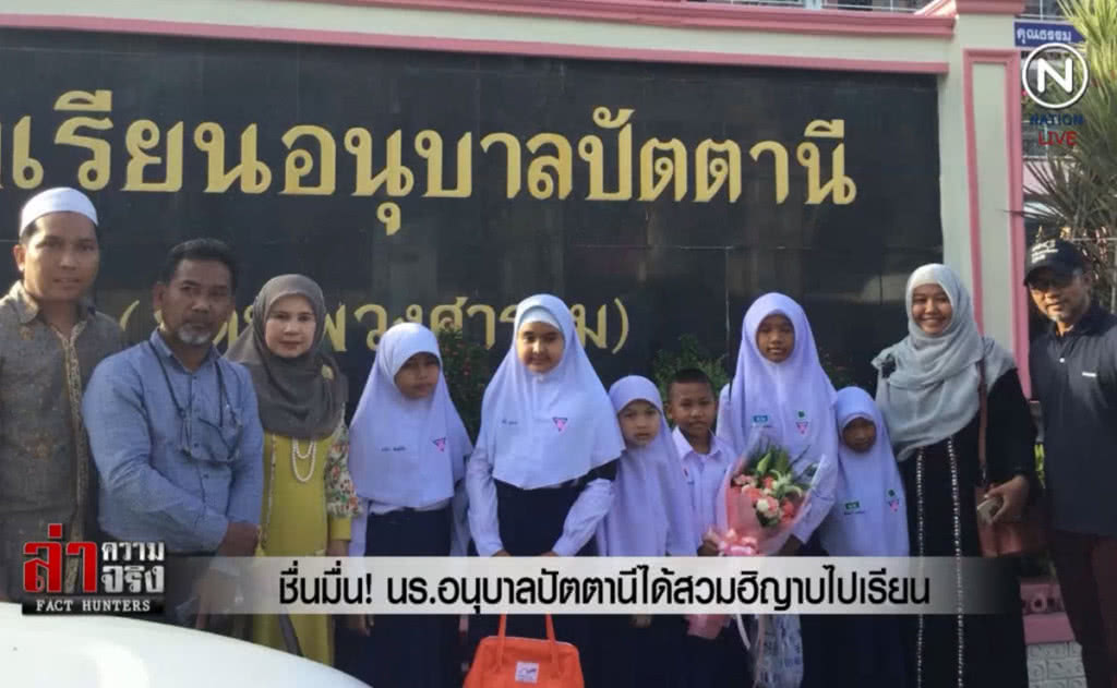 นี่คือภาพแห่งความสุขของนักเรียนมุสลิมในโรงเรียนอนุบาลปัตตานี บรรยากาศตั้งแต่ช่วงเช้า ทางโรงเรียนเปิดการเรียนการสอนตามปกติ มีคุณครูทำหน้าที่เป็น "ครูเวร" ทั้งครูพุทธและครูมุสลิม ช่วยกันต้อนรับนักเรียนที่หน้าประตูโรงเรียน จากนั้นนักเรียนได้เข้าแถวเคารพธงชาติ โดยมีนักเรียนหญิงที่คลุมฮิญาบเข้าแถวด้วย 4 คน เป็นภาพความสามัคคีกลมเกลียวของน้องๆ ต่างศาสนา สะท้อนความเป็น "สังคมพหุวัฒนธรรม" อย่างแท้จริง