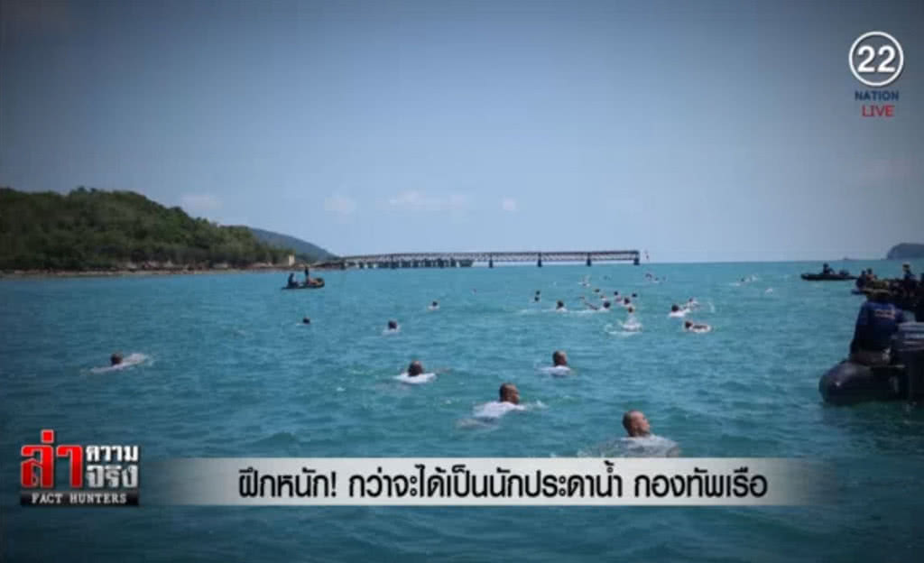 สำหรับนักเรียนที่ว่ายน้ำถึงฝั่งเป็นคนแรก ใช้เวลาไป 3 ชั่วโมงครึ่ง ส่วนคนอื่นก็ทยอยตามมาและแล้วบททดสอบว่ายน้ำก็จบลง ครูฝึกประเมินว่า ตั้งแต่วันแรกจนถึงปัจจุบันนักเรียนมีพัฒนาการขึ้นมาก ทั้งจิตใจและร่างกาย ไม่จำเป็นต้องทดสอบอีก ล่าสุดแม้นักเรียนจะเหลือเพียง 16 นาย แต่ครูฝึกก็ไม่หนักใจ เพราะหลักสูตรประดาน้ำมีมาตรฐานที่แน่นอน ชัดเจน ถ้าใครพร้อมก็จะได้ฝึกต่อ