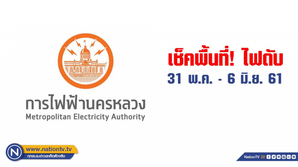 ทั้งนี้เพื่อพัฒนาและบำรุงรักษาระบบการจ่ายกระแสไฟฟ้าให้มีประสิทธิภาพยิ่งขึ้น เพื่อให้เกิดความปลอดภัยในการปฏิบัติงาน การไฟฟ้านครหลวงจึงจำเป็นต้องงดจ่ายกระแสไฟฟ้าเป็นการชั่วคราวในวันที่ 31 พฤษภาคม - 6 มิถุนายน 2561 ในบางพื้นที่ดังกล่าว ดังต่อไปนี้