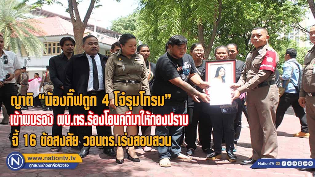 10. รถยนต์คันก่อเหตุวันก่อเหตุติดป้ายแดงทั้งที่รถคันดังกล่าวไม่ใช่รถออกใหม่แสดงถึงความผิดปกติหมายถึงเตรียมการออกมาก่อเหตุครั้งนี้10.1) รถยนต์มีการยึดอายัดไว้เป็นของกลางจอดไว้หรือไม่10.2) รถยนต์คันก่อเหตุ และสถานที่กิ๊ฟตายเป็นของคนๆ เดียวกัน11. ตำรวจยังไม่ได้เรียกชายวัยรุ่นในภาพที่โฆษณาขายกิ๊ฟ และนัดเย็บกิ๊ฟได้ รวมทั้งผู้คอมเมนท์ทั้งหมดก่อนกิ๊ฟตาย12. ผลการผ่าช้นสูตรพลิกศพยังไม่มีการแถลง13. ผลการตรวจ DNA ตามตัวของผู้ตายและสถานที่เกิดเหตุต่างๆ ยังไม่มีการแถลงว่ามีของผู้ต้องหาคนใดบ้าง14. โทรศัพท์มือถือของผู้ตายนี้ที่ ตร.ยึดไปมีการนำไปถอด และหาหลักฐานประกอบสำนวนคดีหรือยัง ทำไมไม่มีการแถลงผล15. ขอให้ทาง สตช.ยึดโทรศัพท์มือถือของผู้ต้องสงสัยหญิงทั้งสามและผู้ต้องหาชายทั้งสี่มาดำนินการค้นหาข้อมูลประกอบคดีเชื่อว่าเป็นประโยชน์ในทางคดีแน่นอน และขอให้กู้ข้อมูลที่มีการลบออก16. ขอให้โอนคดีมากองปราบปรามเพื่อสืบสวนสอบสวนในเชิงลึกเพิ่มเติมและขยายผลหรือส่งกองปราบปรามเข้าไปสนับสนุนสอบสวนในเชิงลึกฝ่ายเดียวเป็นคู่ขนานกันไม่ยุ่งเกี่ยวกับท้องที่แต่อย่างใด