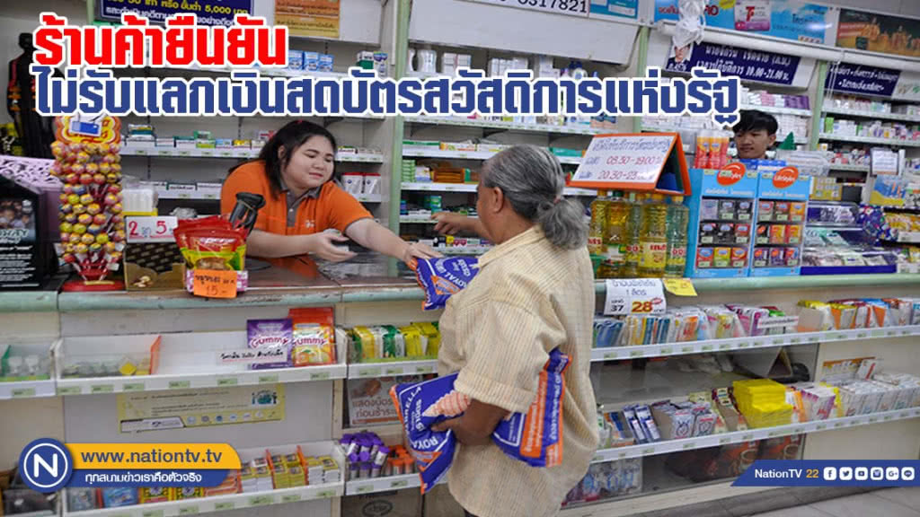 นายจักริน เชิดฉาย เจ้าของร้านหมอยาพลาซ่า เปิดเผยว่า ปัจจุบันที่ร้านของตนเองก็มีประชาชนทยอยเดินทางมาใช้บัตรสวัสดิการแห่งรัฐ ซื้อสินค้าทุกวัน แต่ยังไม่พบว่ามีใครมาขอแลกเป็นเงินสดตามที่มีข่าวลือแต่อย่างใด ทั้งนี้ตนเองได้กำชับกับลูกน้องภายในร้านทุกคนว่า ถ้ามีคนมาขอใช้บัตรสวัสดิการแห่งรัฐแลกเป็นเงิน ก็ห้ามรับเด็ดขาด เพราะถือว่าไม่เป็นไปตามวัตถุประสงค์ของบัตร อีกทั้งยังเป็นการทำผิดกฎหมายด้วย พร้อมกับฝากถึงร้านค้าอื่นๆ ที่ร่วมโครงการบัตรสวัสดิการแห่งรัฐด้วยว่า อย่าได้เสี่ยงที่จะรับเปลี่ยนเป็นเงินสด เพราะถ้าเจ้าหน้าที่รัฐตรวจสอบพบจะถูกตัดสิทธิ์ร้านธงฟ้าทันที และดำเนินคดีทางกฎหมายอย่างหนัก ส่วนประชาชนก็จะถูกยึดบัตรคืนทันทีเช่นกัน