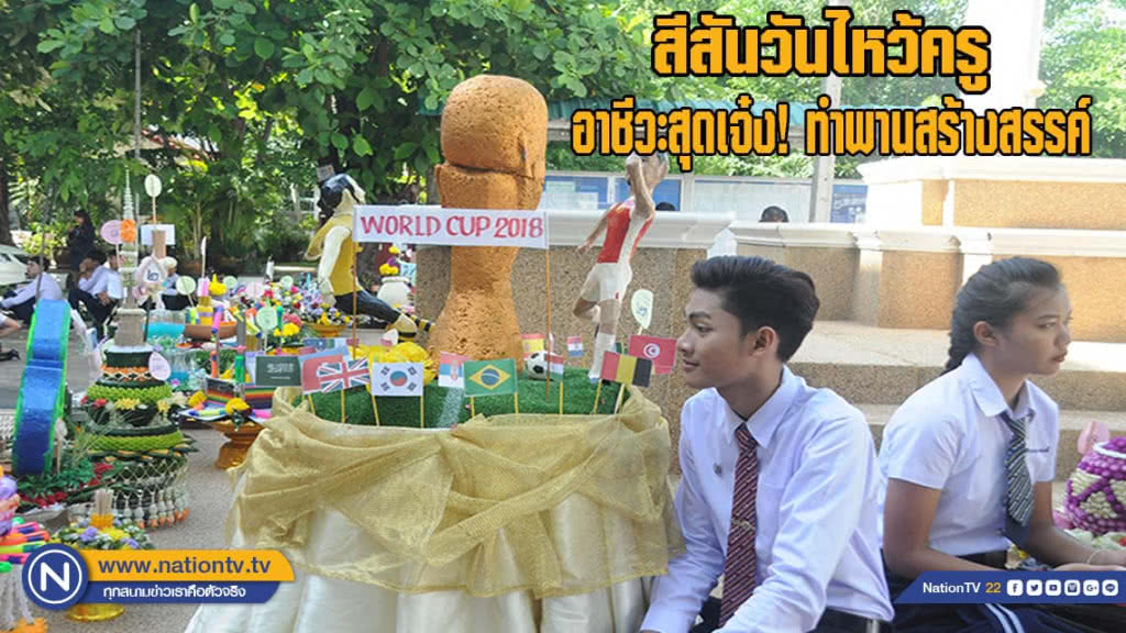 และในอีกไม่กี่สัปดาห์ก็จะถึงเทศกาลฟุตบอลโลก 2018 วิทยาลัยอาชีวศึกษามหาสารคามจึงได้จัดทำพานพิเศษขึ้นมาหนึ่งพานคือพานฟุตบอลโลกซึ่งเป็นของแผนกออกแบบโดยนำวัสดุเหลือใช้มาออกแบบเป็นตัวนักฟุตบอลและมีถ้วยบอลโลกบนสนามหญ้าเทียมพร้อมปักธงชาติทีมต่างๆ ที่เข้าร่วมแข่งขันอย่างสวยงาม