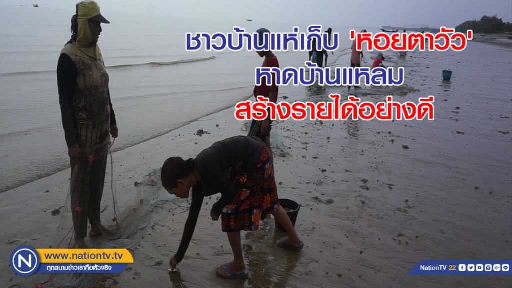 บริเวณชายหาดบ้านแหลม พบว่าเป็นชายหาดยาวกว่า 5 กม. ท่ามกลางสายฝนที่ตกลงตลอดเวลา พบชาวบ้านนำภาชนะลงไปขุดหอย ที่ฝังตัวในทรายตื้นๆ เพียงเอามือขุดก็นำตัวหอยขึ้นมาได้ และฝังอยู่เต็มพื้นที่ชายหาด ในระยะ 5 กม. ทั่วทั้งบริเวณ ทำให้ชาวบ้านได้หอย จำนวนมาก ตั้งแต่ 3-5 กก. เมื่อได้หอยมาแล้วต้องนำไปแช่น้ำทะเล อีก 2 ชม. เพื่อให้หอยที่ยังมีชีวิต คลายทรายในตัวออกมา จึงนำไปประกอบอาหารได้ ชาวบ้านนำไปขาย ที่ตลาดได้ราคา กก.ละ 30-50 บาท สร้างรายได้อย่างดี
