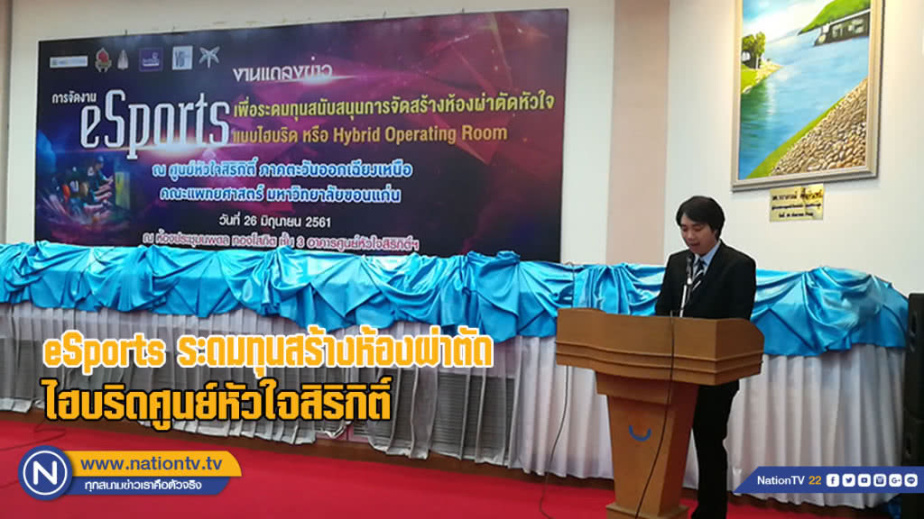 ห้องประชุมนภดล ทองโสภิต ชั้น 3 อาคารศูนย์หัวใจสิริกิติ์ นายสมศักดิ์ จังตระกุล ผวจ.ขอนแก่น พร้อมด้วย ผู้ช่วยศาสตราจารย์ภัทรพงษ์ มกรเวส ผอ.ศูนย์หัวใจสิริกิติ์ แถลงข่าวจัดงาน eSports เพื่อระดมทุนสนับสนุนการจัดสร้างห้องผ่าตัดหัวใจ แบบไฮบริด หรือ Hybrid Operating Room ศูนย์หัวใจสิริกิติ์ ภาคตะวันออกเฉียงเหนือ