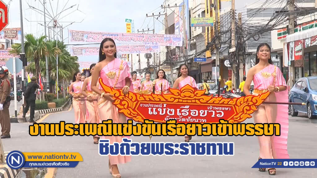 บรรยากาศที่บริเวณหน้าศาลากลางจังหวัดชัยนาท เป็นไปด้วยความคึกคัก มีประชาชนทยอยเดินทางมาร่วมชม ขบวนแห่โดยมีการจัดขบวนแห่อัญเชิญถ้วยพระราชทานสมเด็จพระเจ้าอยู่หัว และสมเด็จพระเทพรัตราชสุดาฯ สยามบรมราชกุมารี ในการแข่งขันเรือยาวประเพณีเข้าพรรษา จังหวัดชัยนาท และขบวนแห่ของดีเมืองชัยนาท โดยได้เดินทางเข้าสู่เขื่อนเรียงหิน เพื่อร่วมในพิธีเปิดงานประเพณีแข่งขันเรือยาว เข้าพรรษา ชิงถ้วยพระราชทาน สมเด็จพระเจ้าอยู่หัว และสมเด็จพระเทพรัตนราชสุดาฯ สยามบรมราชกุมารี