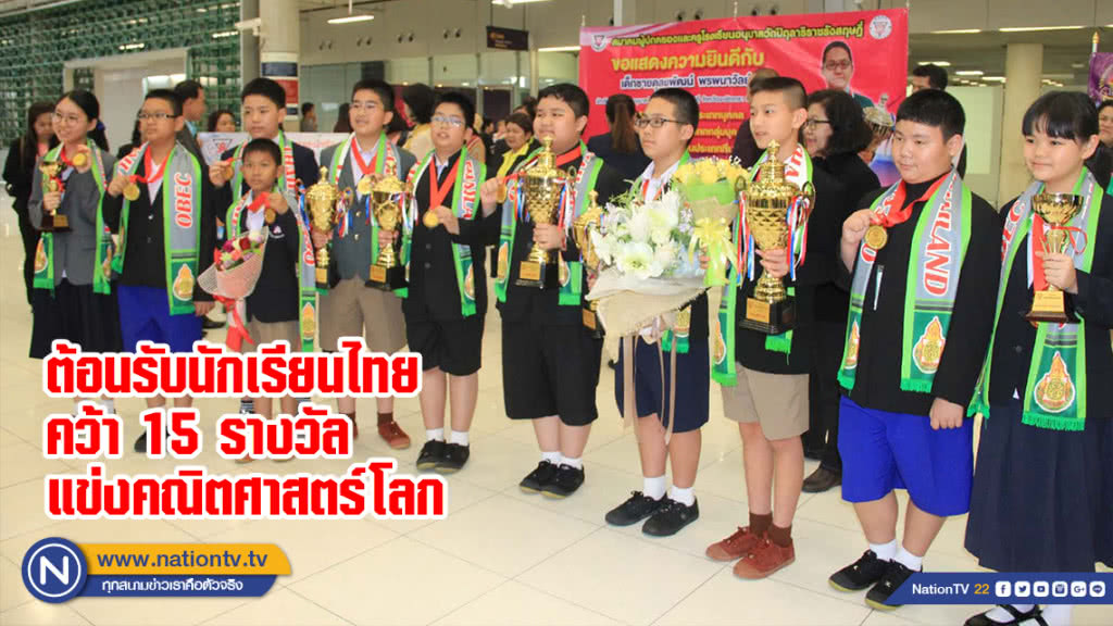 เมื่อเวลา 18.00 น. วันที่ 20 กรกฎาคม 2561 นางจารุภา สังขารมย์ ผู้เชี่ยวชาญด้านการจัดอบรมและการนำเคโนโลยีสารสนเทศและการสื่อสารไปเผยแพร่ สำนักงานคณะกรรมการการศึกษาขั้นพื้นฐาน(สพฐ.) พร้อมคณะให้การต้อนรับคณะ นักเรียนระดับประถมศึกษาของไทยที่มีความสามารถด้านคณิตศาสตร์ เข้าร่วมการแข่งขันคณิตศาสตร์โลก ระดับประถมศึกษา ประจำปี พ.ศ. 2561 Po Leung Kuk Primary Mathematics World Contest 2018 (PMWC 2018) ระหว่างวันที่ 16-20 กรกฎาคม 2561 ณ เขตบริหารพิเศษฮ่องกง สาธารณรัฐประชาชนจีน เดินทางกลับถึงประเทศไทย สนามบินสุวรรณภูมิ โดยสายการบิน Cathay Pacific เที่ยวบินที่ CX 751 ถึงสนามบินสุวรรณภูมิ เวลา 16.30 น.