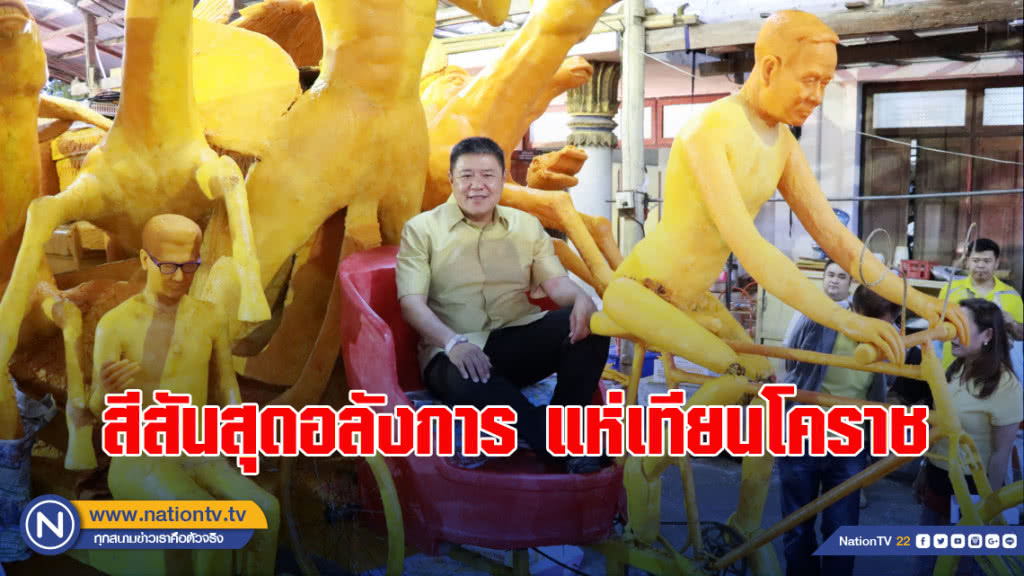 นอกจากนี้นายสุรวุฒิ ฯ นายก ทน.นครราชสีมา พร้อมคณะ ได้ร่วมกันเดินชมความคืบหน้าการแกะต้นเทียนพรรษาวัดโพธิ์ ซึ่งเป็นขบวนเทียนที่สร้างสีสันให้กับงานประเพณีแห่เทียนพรรษาทุกปี นอกจากการปั้นขบวนเทียนพรรษาเป็นรูปพุทธประวัติ และสัตว์ป่าหิมพานต่างๆ แล้ว ยังได้ปั้นรูปหมูป่าสวมรองเท้าสตาร์ท เพื่อให้กำลังใจทีมหมูป่าอะคาเดมี และปั้นหุ่นจำลองเหล่าฮีโร่ที่อยู่ในเหตุการณ์กู้ภัยถ้ำหลวง-ขุนน้ำนางนอน โดยจำลองเป็นรูปถ้ำหลวง แล้วนำหุ่นปั้นของเด็กๆ ทีมหมูป่าอะคาเดมี่ เข้าไปอยู่ในถ้ำ ส่วนปากถ้ำ เช่น นายณรงค์ศักดิ์ ฯ ผู้ว่าราชการจังหวัดเชียงราย,หน่วยซีล ,จ่าแซม, หมอภาคย์ ,ทีมนักดำน้ำชาวอังกฤษ ,ทีมปีนรังนก และทีมสูบน้ำบาดาล กำลังปฏิบัติภารกิจ ประดับอยู่ทั้งสองข้างขบวนเทียน ส่วนด้านหลังขบวนเทียนมีต้นเทียนแกะเป็นรูป พล.อ.ประยุทธ์ จันทร์โอชา นายกรัฐมนตรี เป็นจักรยานสามล้อ ซึ่งเปิดโอกาสให้ประชาชนมีส่วนร่วมขึ้นมานั่งเพื่อถ่ายภาพเป็นที่ระลึก และมีต้นเทียนแกะสลักเป็นรูปนายวิเชียร ฯ ผู้ว่าราชการจังหวัดนครราชสีมา สวมแว่นสายตา นั่งข้างกัน