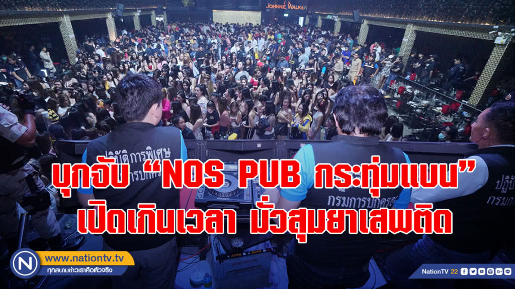 ทั้งนี้ก่อนเข้าจับกุม เจ้าหน้าที่ฝ่ายปกครอง ได้แฝงตัวเป็นนักเที่ยวเข้าทำการสืบสวน เมื่อเกินเวลาตี 1 ซึ่งเป็นเวลาเปิดทำการตามกฎหมายของสถานบริการดังกล่าวไปแล้ว ครึ่งชั่วโมง ก็พบว่าสถานบริการยังคงไม่มีทีท่าที่จะเช็คบิลปิดทำการแต่อย่างใด ซึ่งนักเที่ยวยังคงดื่มกินและเต้นกันอย่างเมามันตามจังหวะดนตรีของทางร้าน นอกจากนี้ยังพบว่าร้านยังคงจำหน่ายเครื่องดื่มแอลกอฮอล์เป็นปกติ แม้ว่าจะเลยเวลาเปิดทำการตามกฎหมายไปแล้ว สายลับจึงให้สัญญาณแก่ชุดจับกุมเข้าดำเนินการตรวจสอบจับกุม เมื่อกำลังของเจ้าหน้าที่ชุดจับกุมเดินทางมาถึง พบว่าสถานบริการ NOS PUB ยังคงเปิดให้บริการตามปกติ โดยมีนักเที่ยวจำนวนกว่า 800 คน ดื่มกิน และ เต้นอย่างเมามัน จากนั้นเจ้าหน้าที่ฝ่ายปกครองจึงแสดงตัวขอตรวจสอบ ให้ปิดเสียงดนตรี และเปิดไฟภายในร้าน ทำให้นักเที่ยวต่างแตกตื่น นักเที่ยวที่พกยาเสพติด ต่างก็โยนยาเสพติด และวัตถุที่ออกฤทธิ์ต่อจิตประสาท และอุปกรณ์การเสพลงพื้นเกลื่อนกลาด ทั้งยาไอซ์ ยาอี ยาเคตามีน และยาทามาดอน