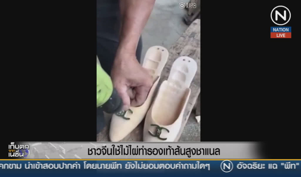 (ชมคลิปเต็มด้านล่าง) คลิปที่แสดงให้เห็นฝีมือของชาวจีนคนหนึ่ง ที่เหลาไม้ไผ่ ทำเป็นรองเท้าส้นสูงแบรนด์หรู "ชาแนล" ที่สวยงาม แต่ไม่ได้บอกว่า ใส่ได้หรือเปล่า หรือถ้าใส่ได้แล้วจะเดินสบายมั้ย.....