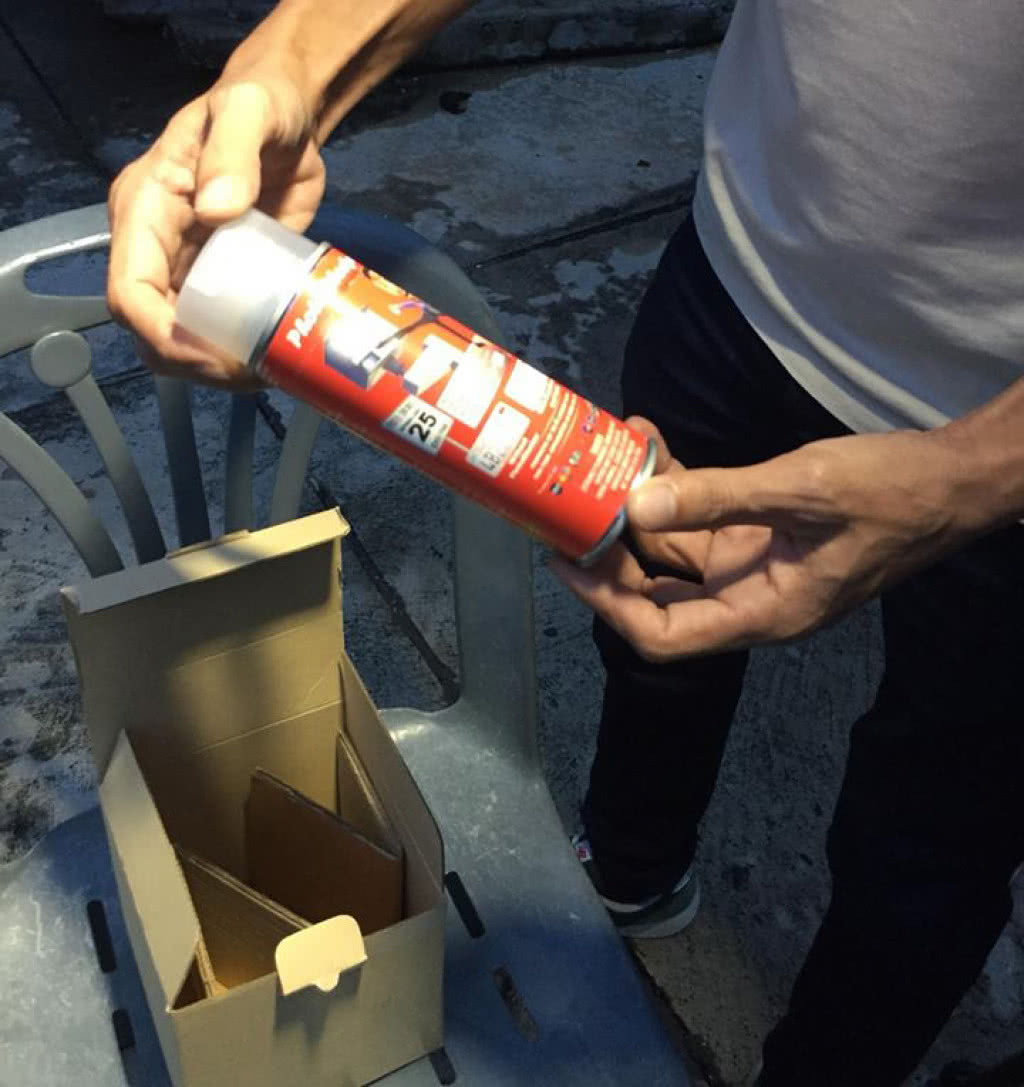 กลับมาที่เรื่องการทดสอบสเปรย์ ซึ่งไฮไลท์อยู่ตรงนี้ หลังจากที่รอคอยมา 2 วัน ในที่สุดก็ได้รับพัสดุบรรจุสเปรย์กระป๋องสีแดงยี่ห้อหนึ่ง ทีมข่าวไม่ลังเลรีบแกะกล่อง แล้วทำการพ่นสเปรย์ลงบนแผ่นป้ายทะเบียนซ้ำหลายๆรอบ จากนั้นรอให้แห้ง ตามวิธีใช้ข้างกระป๋อง