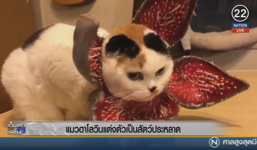 ในวันฮาโลวีน สัตว์เลี้ยงจะกลายสภาพเป็นอย่างไรนั้น ขึ้นอยู่กับเจ้าของ เช่นกรณีของแมวตัวนี้ ที่ถูกจับแต่งตัวเป็นสัตว์ประหลาด "เดโมกอร์กอน" จากซีรีส์ดัง Stranger Things ที่ฉายทาง Netflix