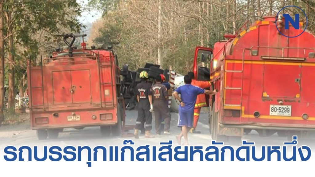 รถบรรทุกแก๊ส LPG 8 ตัน เสียหลักบังคับรถไม่อยู่เสียชีวิตคาที่ 1ราย