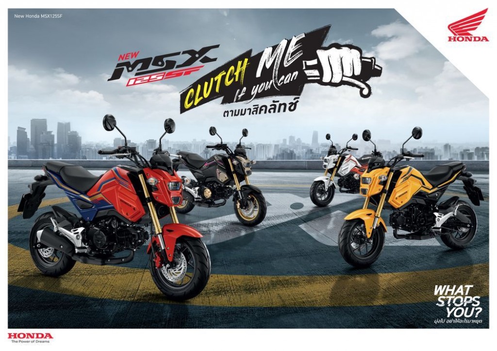 Honda เผยโฉมรถจักรยานยนต์รุ่น New MSX125SF รถยอดนิยมอันดับหนึ่งของเมืองไทย รถสปอร์ต 125 โดย เอ.พี. ฮอนด้า ผู้นำวงการรถจักรยานยนต์ไทย เอาใจวัยรุ่นทั่วประเทศ ด้วยการปล่อยสีสันใหม่เท่ขึ้นกว่าเดิมสไตล์ซูเปอร์ฮีโร่ให้กับ ส่งมอบความมันส์ภายใต้คอนเซปต์ "Clutch Me If You Can ตามมาสิคลัทช์" สะท้อนความสนุก คล่องตัว ควบคุมง่ายดั่งใจคิด ทั้งยังเร้าใจกว่าด้วยคลัทช์มือ