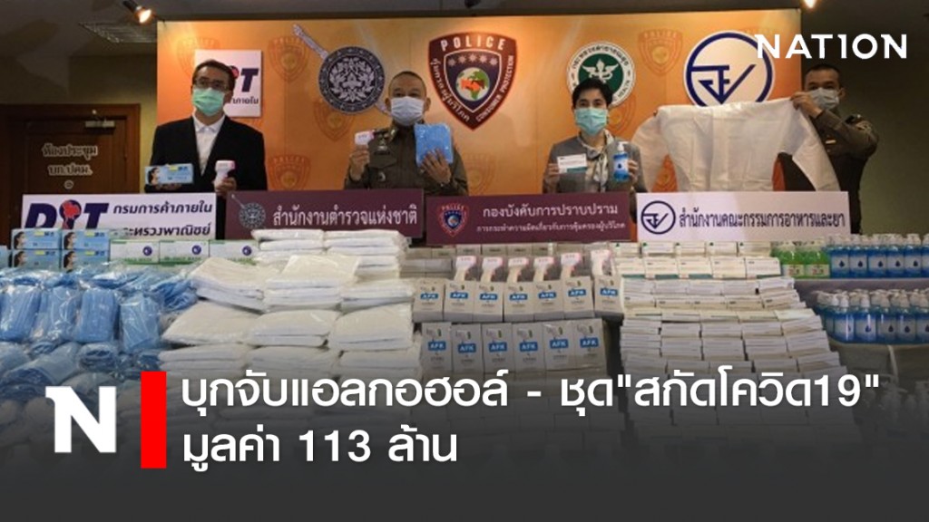 เมื่อเวลา 11.15 น. วันที่ 10 เมษายน 2563 ที่กองบังคับการปราบปรามการกระทำความผิดเกี่ยวกับการคุ้มครองผู้บริโภค (บก.ปคบ.) พล.ต.ต.ณัฐศักดิ์ เชาวนาศัย ผบก.ปคบ. พร้อมด้วย เภสัชกรหญิงสุภัทรา บุญเสริม รองเลขาธิการคณะกรรมการอาหารและยา นายชาตรี อารีวงศ์ ผู้อำนวยการกองตรวจสอบและปฏิบัติการ ร่วมกันแถลงผลปฏิบัติการจับกุมหน้ากากอนามัย อุปกรณ์ชุดตรวจไวรัสโควิด-19 ชุดตรวจป้องกัน PPE เครื่องวัดอุณหภูมิแบบอินฟาเรด และเจลแอลกอฮอล์ รวมมูลค่าของกลางกว่า 113,990,000 บาท