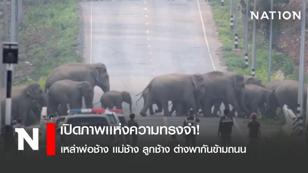 เปิดภาพเเห่งความทรงจำ! เหล่าพ่อช้าง เเม่ช้าง ลูกช้าง ต่างพากันข้ามถนน