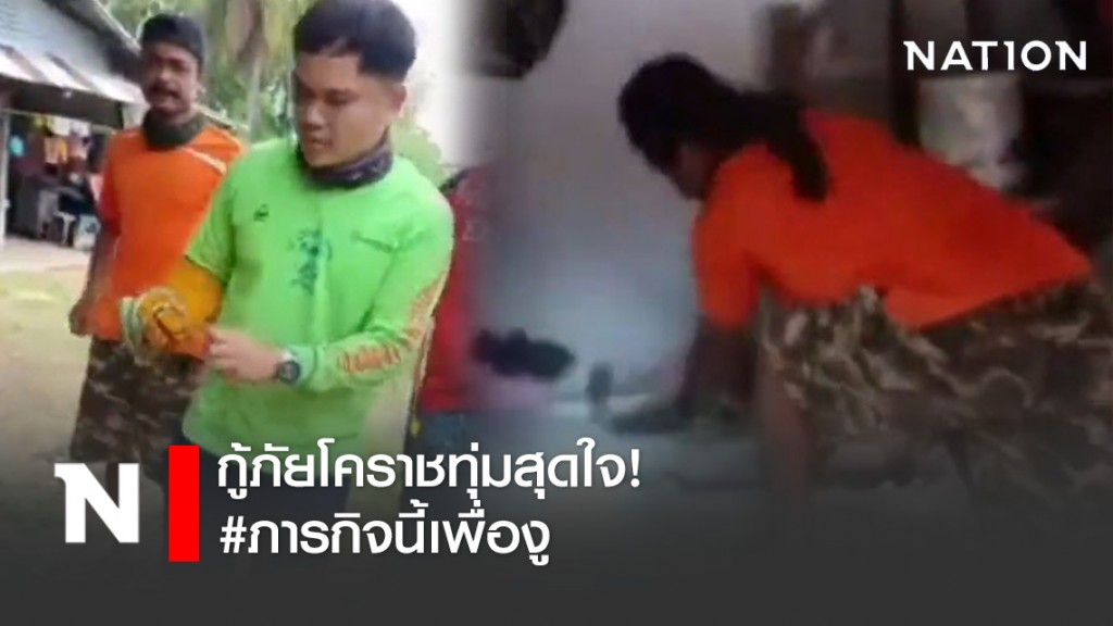 จากการสอบถามชาวบ้านผู้พบเห็นเหตุการณ์ทราบว่าขณะที่เจ้าของบ้านกำลังจัดข้าวของอยู่ภายในบ้าน พบงูซุกซ่อนอยู่ในกองเสื้อผ้าด้วยความตื่นคน งูจึงได้ฉกเจ้าของบ้านก่อนเลื้อยหนีหายไป ซึ่งคาดว่าน่าจะเลื้อยเข้าไปซ่อนในโพรงใต้บันไดก่อนญาติๆ จะระดมกำลังช่วยกันนำเจ้าของบ้าน ซึ่งถูกงูฉกส่งรักษาตัวที่โรงพยาบาล โดยทางทีมแพทย์ต้องการทราบชนิดของงูที่สร้างเหตุในครั้งนี้ จึงได้ประสานขอความช่วยเหลือไปยังหน่วยกู้ภัยซึ่งเจ้าหน้าที่กู้ภัยมาถึงจึงตัดสินใจใช้อุปกรณ์ทุบพื้นปูนใต้บันใดทั้งเจาะทั้งขุดพื้นปูนอยู่นาน ก็ไม่มีทีท่าว่าจะหาตัวงูเจอได้เลย งานนี้ทำเอาพี่ๆกู้ภัยเหนื่อยไปทั่วหน้า
