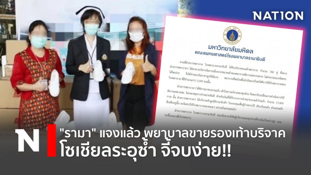 ฝ่ายการพยาบาลฯ ได้พิจารณาทบทวนแล้ว เข้าใจความกังวลของทุกฝ่าย จึงขอปรับเปลี่ยนการดำเนินการ ให้มีความเหมาะสม โดยจะหยุดการจำหน่ายทันที สำหรับเงินที่ได้รับจากการจำหน่ายรองเท้าไปแล้ว จำนวน 17,400 บาท นั้น ฝ่ายการพยาบาลฯได้บริจาคเข้ามูลนิธิรามาธิบดีฯ ในกองทุนเพื่อผู้ป่วยยากไร้ เรียบร้อยแล้ว ส่วนรองเท้าที่เหลืออยู่นั้น จะจัดสรรให้กับพยาบาลของคณะฯ อย่างเป็นธรรมต่อไป