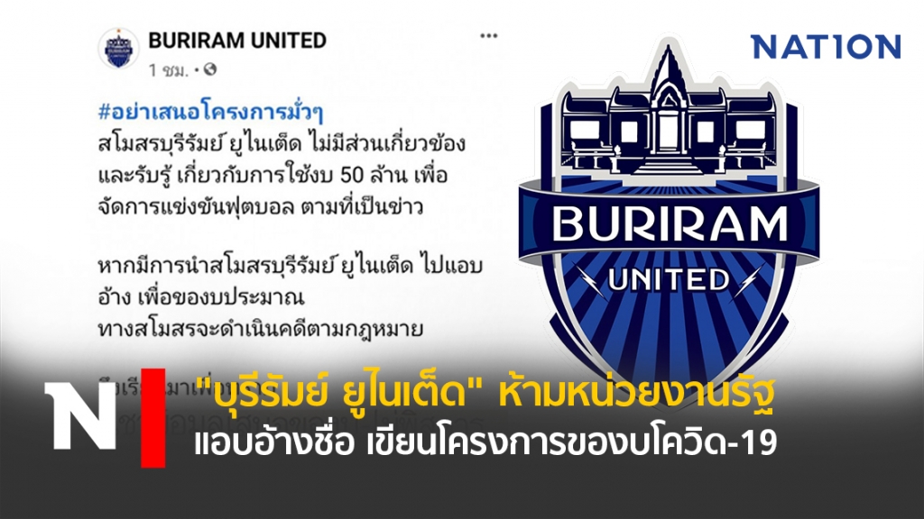 ล่าสุด เพจ BURIRAM UNITED ของ สโมสรฟุตบอลบุรีรัมย์ ยูไนเต็ด ได้ออกมาชี้แจงถึงเรื่องที่ถูกพาดพิง ไม่มีส่วนเกี่ยวข้อง และรับรู้ เกี่ยวกับการใช้งบ 50 ล้าน เพื่อจัดการแข่งขันฟุตบอล ตามที่เป็นข่าว หากมีการนำสโมสรบุรีรัมย์ ยูไนเต็ด ไปแอบอ้าง เพื่อของบประมาณ ทางสโมสรจะดำเนินคดีตามกฎหมาย จึงเรียนมาเพื่อทราบ
