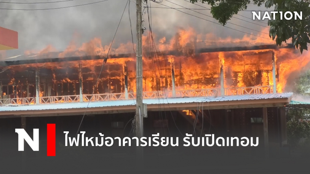โดยขณะที่ครูเวรกำลังทานข้าวเที่ยงอยู่อีกอาคารห้องพักครูได้ยินเสียงดังเปรี้ยงๆ มาจากอาคารเรียนเก่า ด้านหลังของโรงเรียน จึงเดินออกไปดูพบว่าเพลิงได้ลุกไหม้อาคารเรียนเก่า ที่ทางโรงเรียนปรับเป็นอาคารโรงอาหารชั่วคราวซึ่งเป็นอาคารไม้สองชั้น ใต้ถุนโล่ง มีโต๊ะอาหารวางเว้นเป็นระยะๆด้านบนเป็นที่เก็บข้าวของที่ทางโรงเรียนไม่ใช้แล้วบางอย่าง