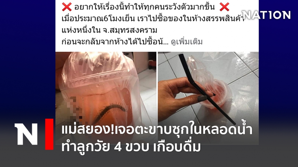 พี่ที่อยู่ในร้านน้องบอกให้เราไปบอกที่ร้านน้ำ เราก็เลยพาน้องไปเป็นเพื่อนโดยเอาแก้วกับหลอดไปที่ร้านด้วยเราก็ได้ไปบอกกับทางร้าน ว่าควรระวังมากกว่านี้ ทางร้านจะทำแก้วใหม่ให้แต่เราไม่เอา ทางร้านเลยคืนเงินมา 30 บาทเราเลยบอกไปว่าถ้าลูกเราไม่ใช่เด็กขี้กลัว แล้วกินเข้าไปจะทำยังไงถ้าลูกเราเป็นอะไรขึ้นมาคุณจะรับผิดชอบยังไง แล้วถ้าเป็นคนอื่นละคุณจะรับผิดชอบไหวมั้ย จากนั้นทางร้านก็ได้ขอโทษเราก็เออไม่เอาผิดอะไรไปมากกว่านี้เลยพาน้องกลับ เห้ยเงิน30บาทช่วยอะไรไม่ได้เลยนะ ถ้าเกิดอะไรขึ้นมาจริงๆมันคือชีวิตคนเลยนะเว้ย