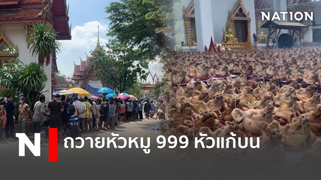 จัดชุดใหญ่ แก้บนขายที่ได้ นำหัวหมูถวายวัดกิ่งแก้วเกือบพันหัว