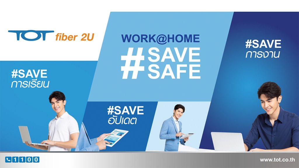 บริษัท ทีโอที จำกัด (มหาชน) ให้คุณทำงานที่บ้านได้ง่ายๆ จะเรียน-สอน ซื้อขาย ออนไลน์ ก็เร็วแรง หรือจ่ายบิลก็สบายSave งาน Save เงิน Safe เรา ด้วย TOT fiber 2U อินเทอร์เน็ตไฟเบอร์ออพติกแท้ 100% โปรโมชั่น Work@home ช่วงนี้เวิร์กด้วยเน็ตบ้านแรงๆ ด้วยความเร็ว 300/300 Mbps ค่าบริการเพียง 300 บาท/รอบบิล ตั้งแต่รอบบิลที่ 1 ถึงวันที่ 31 ธันวาคม 2563 และ 590 บาท/รอบบิลตั้งแต่วันที่ 1 มกราคม 2564 ระยะสัญญา 21 รอบบิล