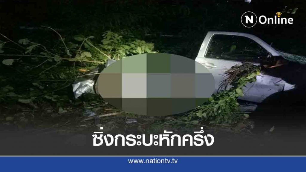 ซิ่งกระบะพุ่งชนต้นไม้หักครึ่งเจ็บ3