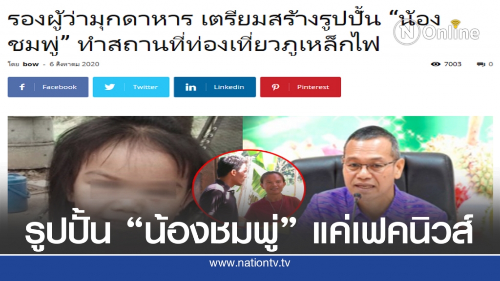 วันที่ 6 ส.ค.2563 กรณีที่มีเว็บไซต์ข่าวชื่อ www.thaismilevariety.com ได้มีการโพสต์เรื่องรองผู้ว่าราชการจังหวัดมุกดาหาร เตรียมสร้างรูปปั้นน้องชมพู่ ทำให้เป็นสถานที่ท่องเที่ยวภูเหล็กไฟ อ.เมือง จ.มุกดาหาร จนมีการแชร์กันเป็นจำนวนมากไปตามเพจเฟซบุ๊กต่าง ๆ กลายเป็นเสียงวิพากษ์วิจารณ์เกี่ยวกับข่าวดังกล่าวไปในทางด้านลบ และต่างแสดงความคิดเห็นกันเป็นจำนวนมาก