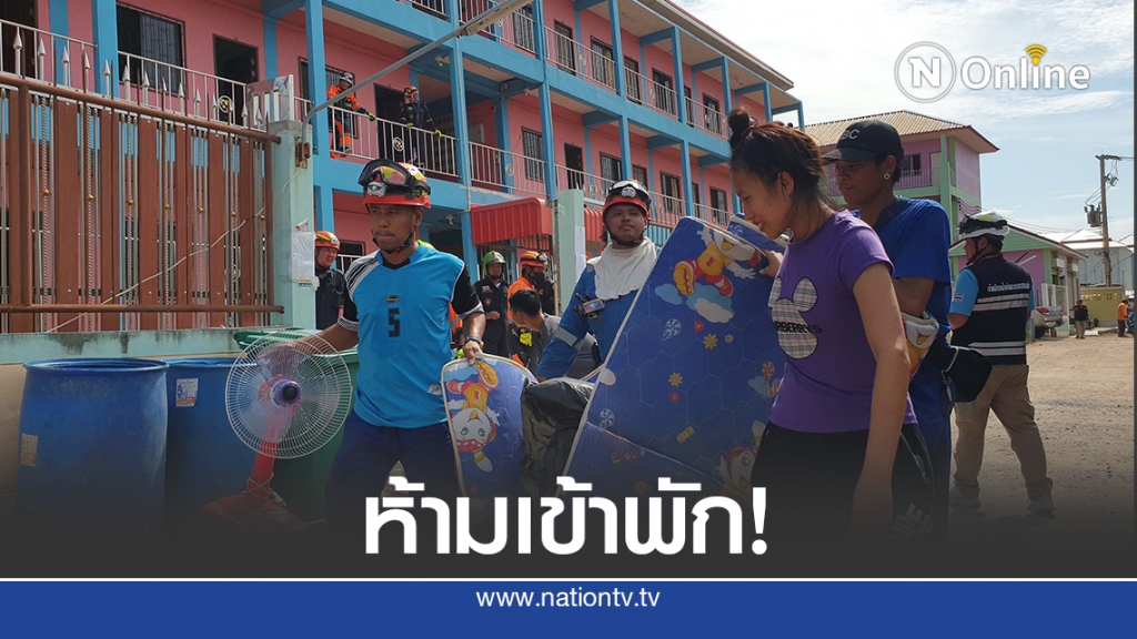 ความคืบหน้าเหตุหอพักป้าเยี่ยมสูง 3 ชั้น 30 ห้อง ตั้งอยู่เลขที่ 125/10 หมู่ที่ 2 ต.พันท้ายนรสิงห์ อ.เมือง จ.สมุทรสาคร เกิดทรุดตัวทำให้ตัวอาคารเอียงไปด้านหลังซึ่งเป็นหนองน้ำ ผู้ที่พักอาศัยเกือบ 60 คน ต้องหนีออกมาอยู่ด้านนอกหอพัก