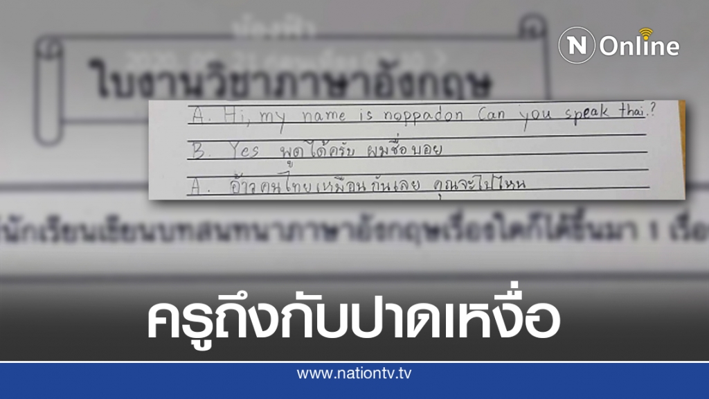 ครูให้โจทย์ภาษาอังกฤษ เขียนบทสนทนา พร้อมยกตัวอย่างให้นักเรียนดู ต้องกุมขมับ หลังเห็นคำตอบนักเรียนที่อ่านแล้วต้องขำทั้งน้ำตา เพราะไม่รู้ว่าจะต้องให้คะแนนอย่างไรเลย