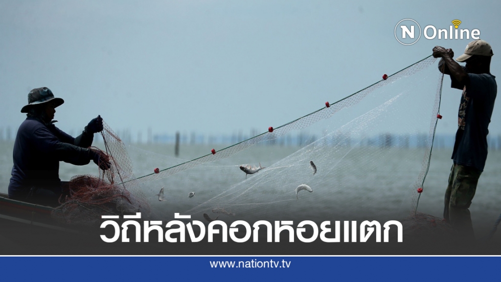 ชาวประมงพื้นบ้านช่วยกันลากอวนจับปลานานาชนิด ที่เข้ามาติดตาข่ายบริเวณอ่าวบ้านดอน อ.เมือง จ.สุราษฎร์ธานี ซึ่งก่อนหน้านี้คือคอกหอยแครงของนายทุนที่เข้ามากั้นอาณาเขตครอบครองแสดงความเป็นเจ้าของ ด้วยการนำไม้มาปักไว้รอบขนำที่สร้างไว้เฝ้าหอยแครงที่เลี้ยงไว้ ทำให้ชาวประมงพื้นบ้านไม่สามารถเข้าไปทำมาหากินได้