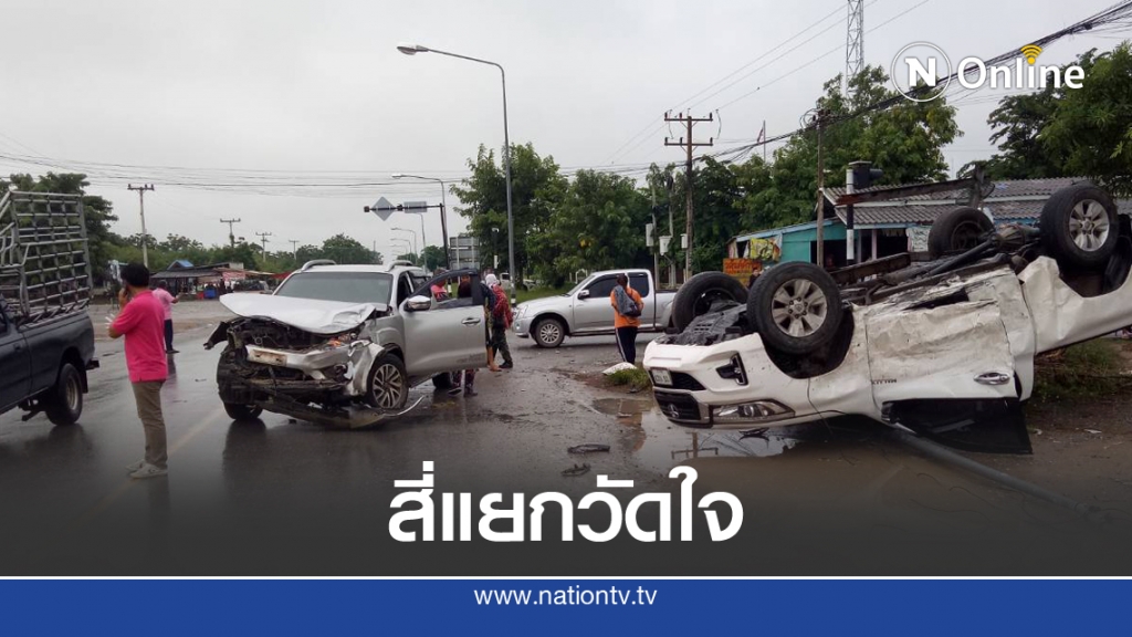 เปิดคลิปอุบัติเหตุรถยนต์กระบะชนกระบะแยกวัดใจ