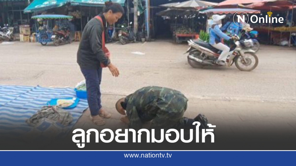 ซึ่งในภาพจะเห็นว่าทหารหนุ่มรายนี้กำลังก้มกราบเท้าแม่ อยู่บริเวณหน้าตลาดสดเทศบาลตำบลหนองบัวแดง นอกจากนั้นยังได้ช่วยแม่จัดร้านขายผัก และไ้ด้มอบเงินให้แม่อีกด้วย ซึ่งเงินนี้ก็เป็นเงินเดือนเดือนแรกของทหารรายนี้ซะด้วย ทำให้คุณแม่ปลื้มใจ และสร้างความประทับใจให้กับผู้ที่ได้พบเห็นเป็นอย่างมาก